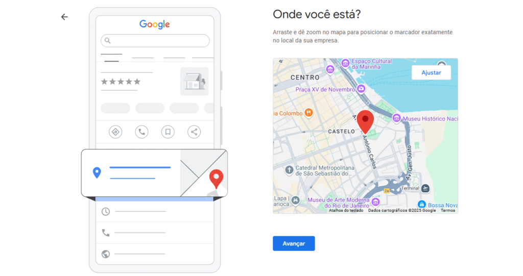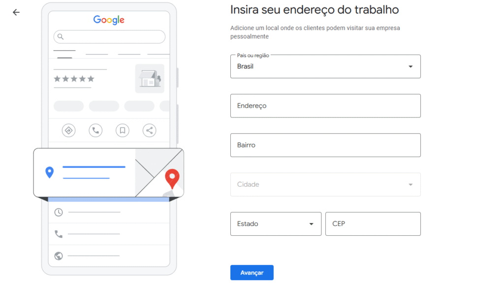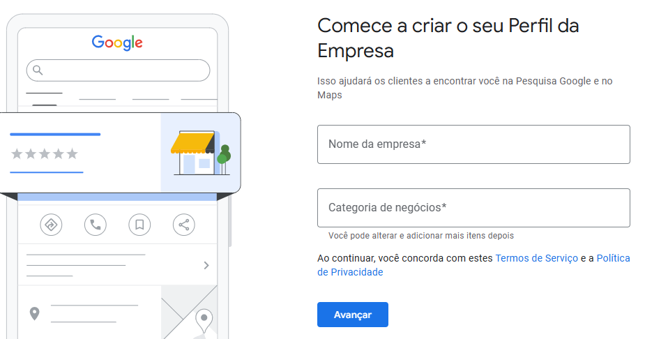 Informe nome e categoria (ex.: Advogado, Escritório de Advocacia), e clique em “avançar”.